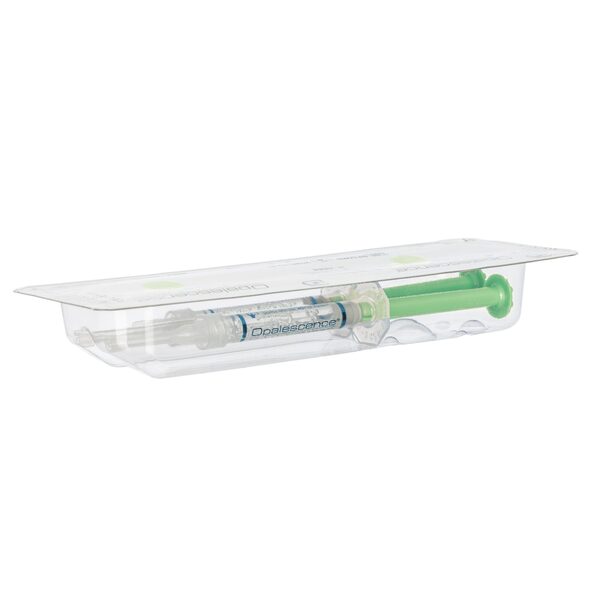 Los geles Opalescence PF poseen una consistencia pegajosa y viscosa que evita filtraciones fuera de la cubeta. La “Sustained Release Formula” asegura una liberación continua del ingrediente activo. Las cubetas individuales pueden emplearse para los retoques regulares posteriores.